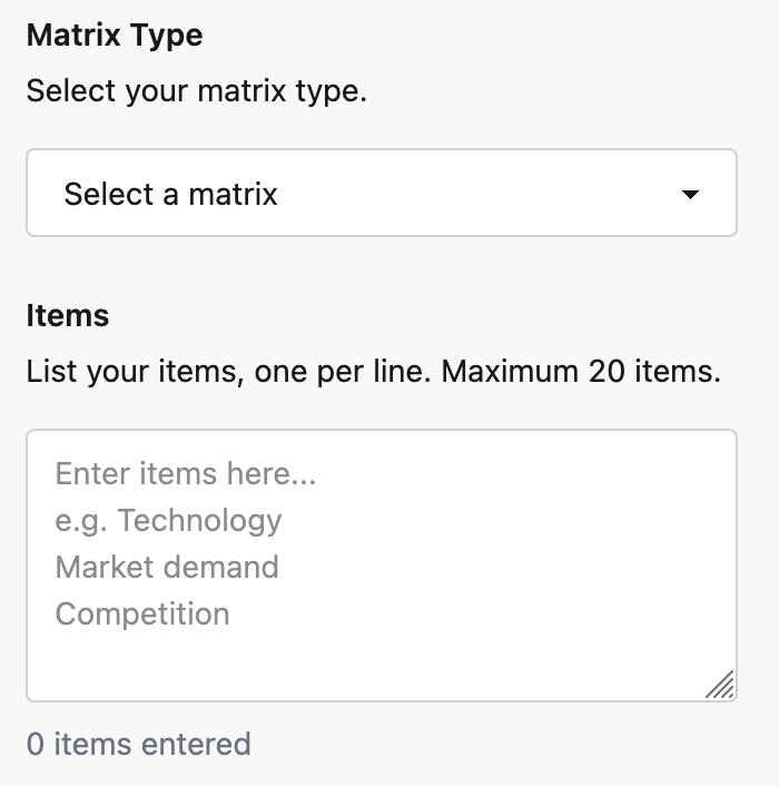 The tool supports three pre-defined grid types and an option to define your own axes and criteria.