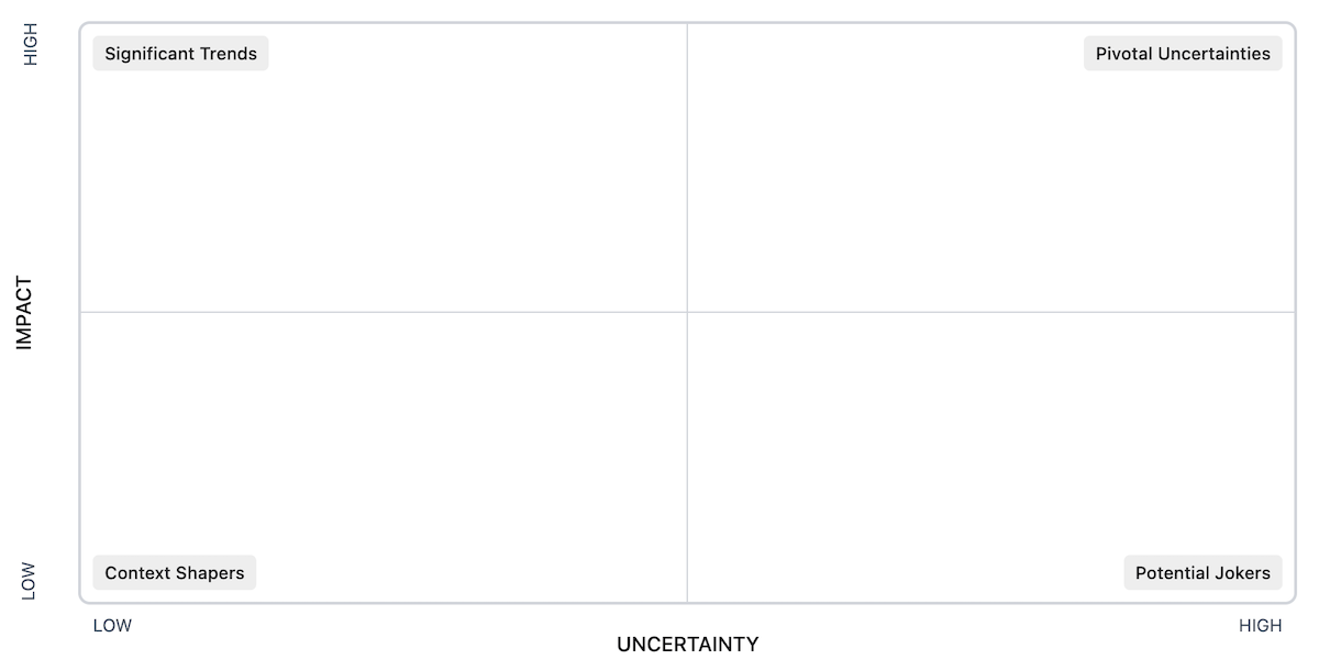 This is a common pattern used across strategy, product management and in futures studies, so I’ve added an online version to my Foresight Tools.
