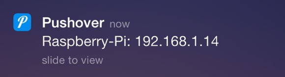 One of the issues that I ran into previously with the Raspberry Pi was that without a screen attached to it (as is the case with the FrankenStatus), I don’t know the IP address that it has DHCP’d. Last time I solved it by simply hard coding the IP address, but this time I decided to make it a bit more dynamic. I use the excellent Pushover Notifications App for sending myself custom notifications and since they have a simple REST API, it was quick and easy to work out the IP address and send it directly to my phone.